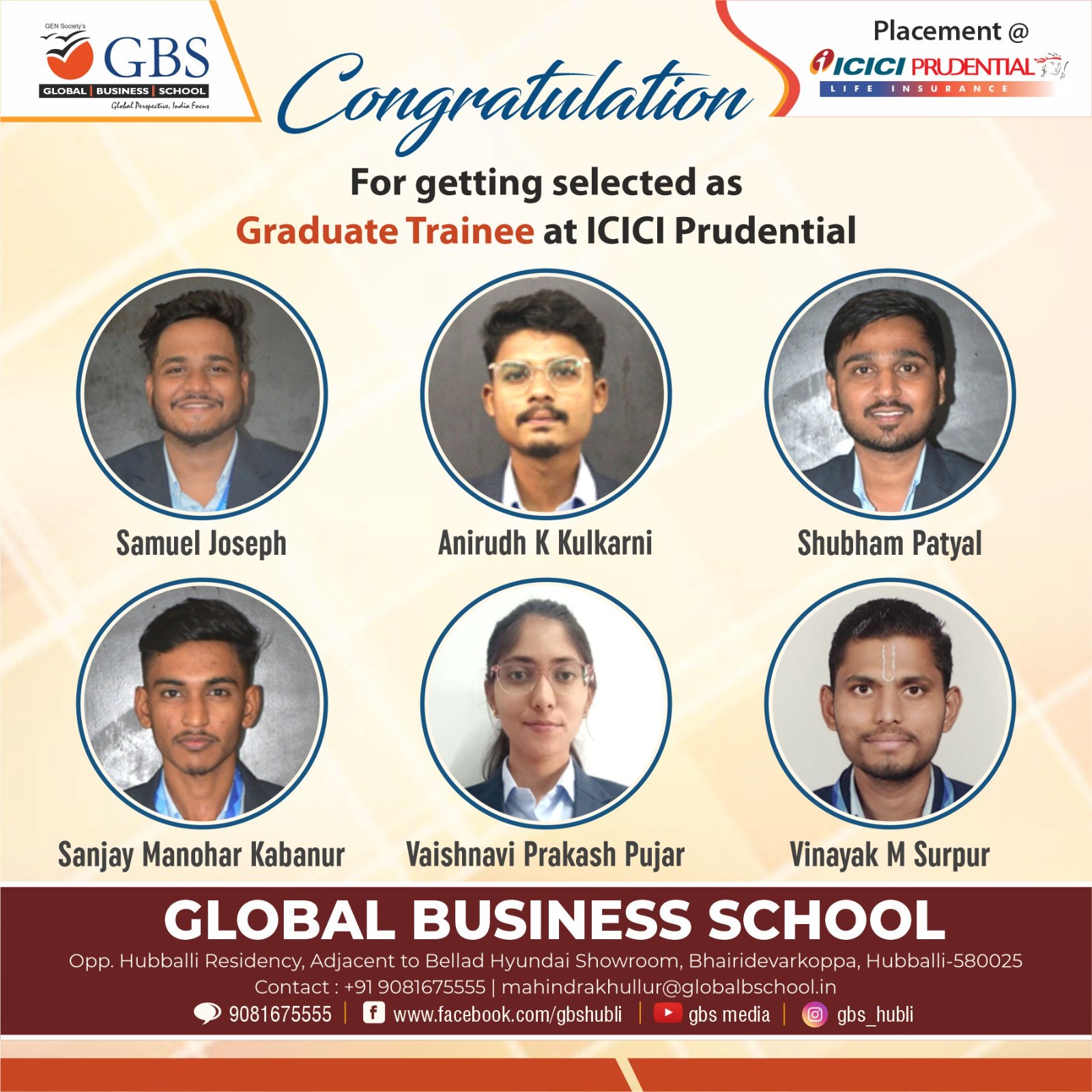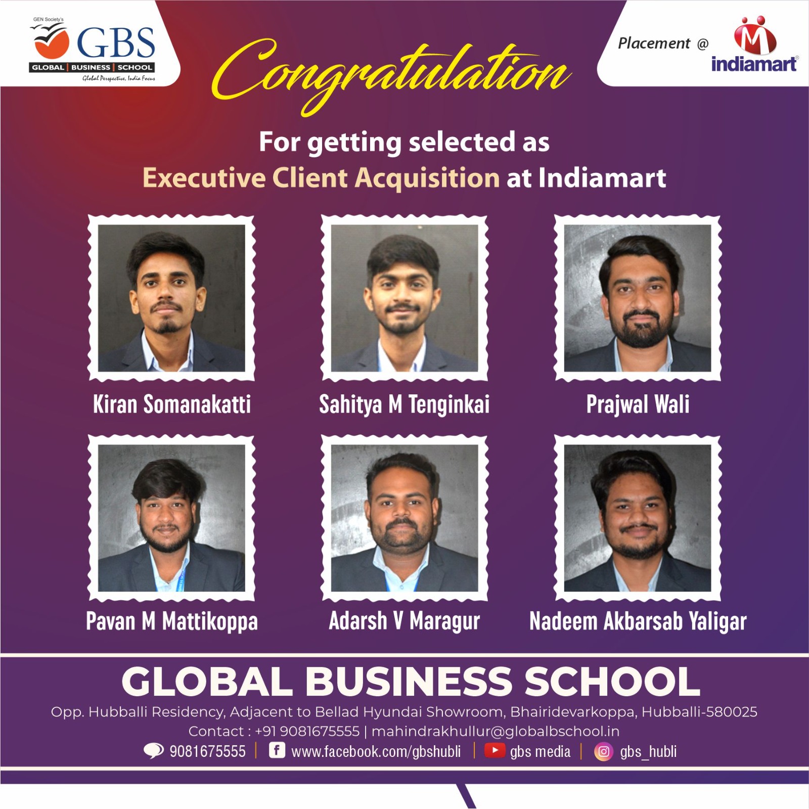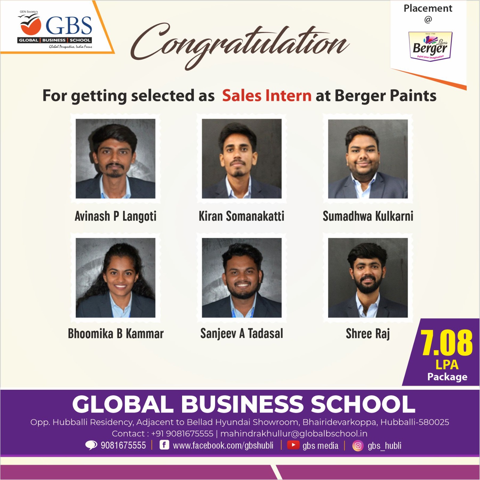 The task of campus placements will start from the onset of the 3rd Semester itself to ensure that by the time the students enters the final Semester more than 75 Percent of the placements are completed. We at GBS are highly obliged for the co-operation, guidance and support extended to us for summer and final placements of our students by various Corporate sectors. This valuable contribution helps us to grow and place our B-School in the list of premier business schools in the country.