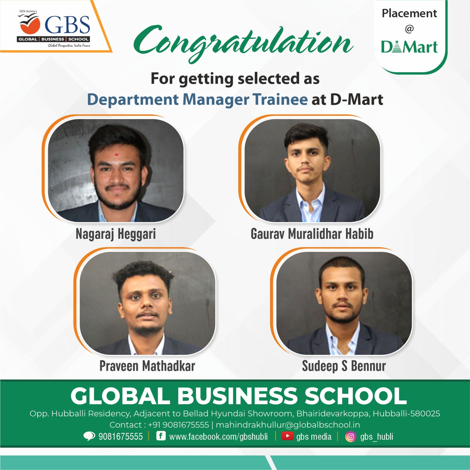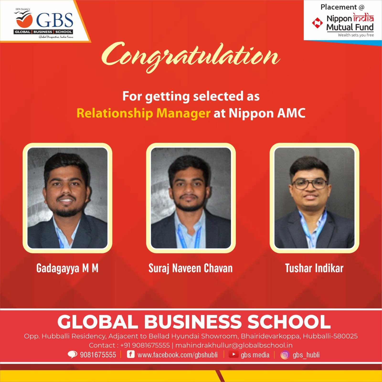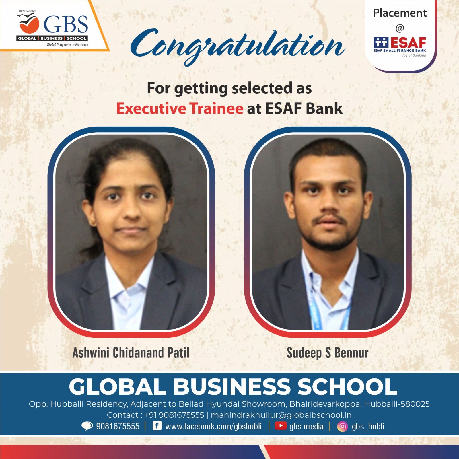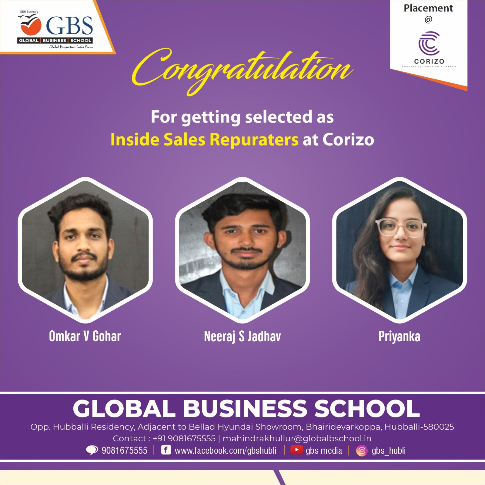 The task of campus placements will start from the onset of the 3rd Semester itself to ensure that by the time the students enters the final Semester more than 75 Percent of the placements are completed. We at GBS are highly obliged for the co-operation, guidance and support extended to us for summer and final placements of our students by various Corporate sectors. This valuable contribution helps us to grow and place our B-School in the list of premier business schools in the country.